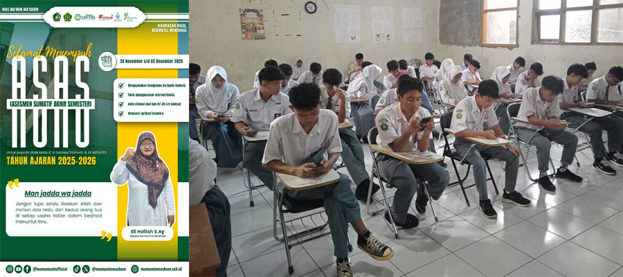 Dalam rangka pelaksanaan Asesmen Sumatif Akhir Semester (ASAS) Tahun Pelajaran 2025/2026, MA Mu’min Ma’shum akan menyelenggarakan ujian menggunakan siste